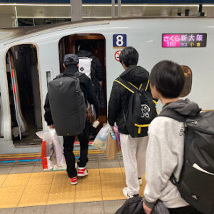 自由散策も終え、博多駅で新幹線に乗り込みます。楽しかった修学旅行もあと少し。無事に帰ってきてください。