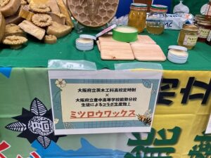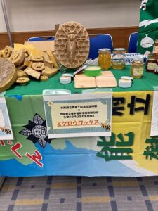 このコースターとワックスを能勢分校が11月23日に開催された「全国学生養蜂サミット2025」の展示ブースに展示してくださいました。本校定時制課程とのコラボ生産物ということで写真のように大きく取り扱ってくださいました。ありがとうございます。なお、能勢分校は展示の部門で優秀賞を受賞されました。本当におめでとうございます!